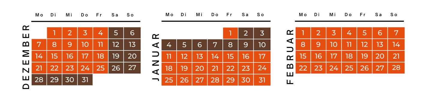 - Unsere Öffnungszeiten können je nach Wetterbedingungen variieren. Aktuelle Informationen erhaltet ihr an der Tageskasse.